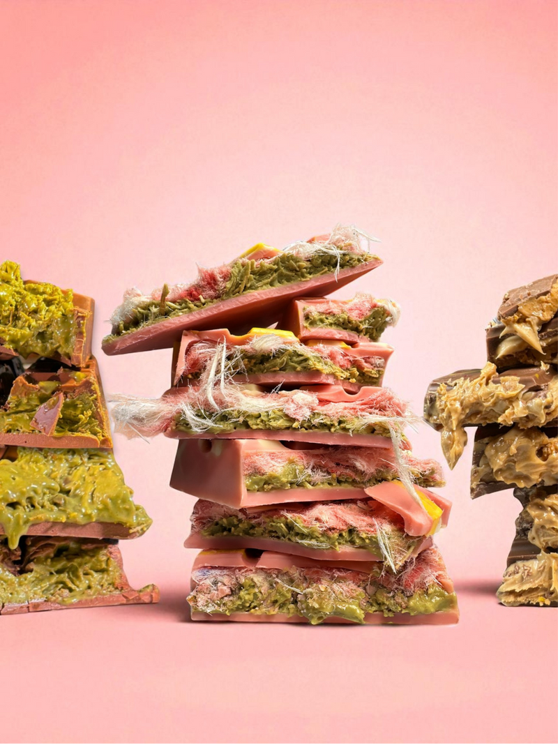 Onze aanpak. Terwijl concurrenten de makkelijke weg kiezen met groene kleurstof, smaakversterkers en goedkope chocolade, kozen wij voor de moeilijke weg. Geen concessies. Wij gebruiken 100% pure pistachepasta (zonder rommel), vers geroosterde knafeh voor die extreme crunch, en premium Belgische Callabaut chocolade. Als we zeggen 'gevuld', dan bedoelen we ook écht gevuld.